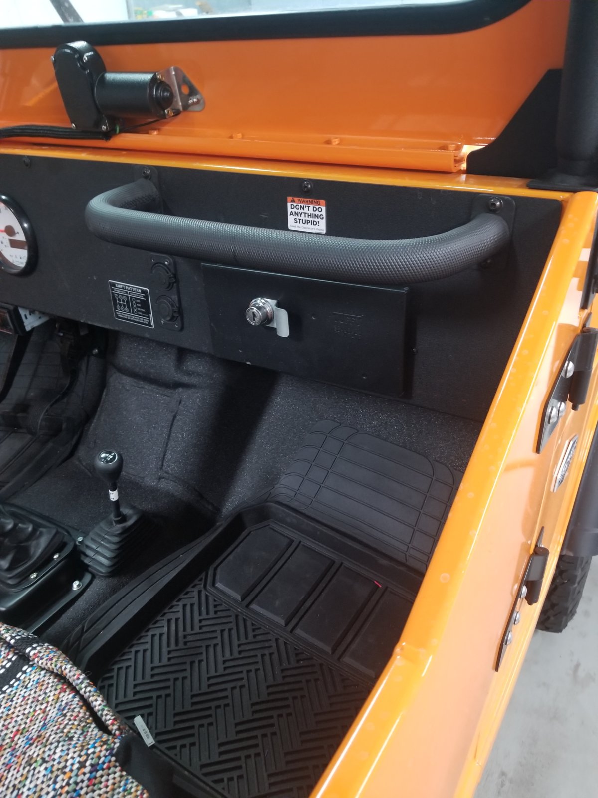 I am looking at mounting a radio receiver next--but first must relocate the lights and horn switch. The glovebox was bought on amazon and is made by Tuffy 035-1. made for CJs