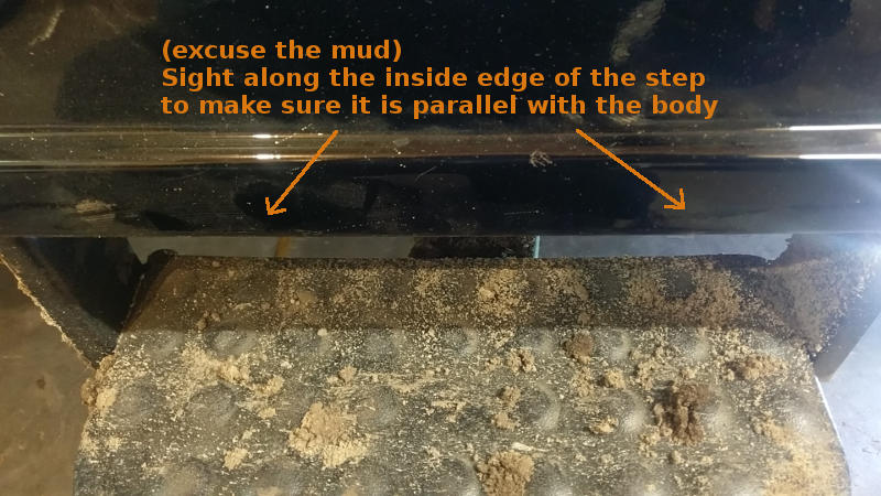 Make sure you position the step so that it is perfectly parallel to the body. You can eyeball this if you look down at an angle to the step. Refer to the image.